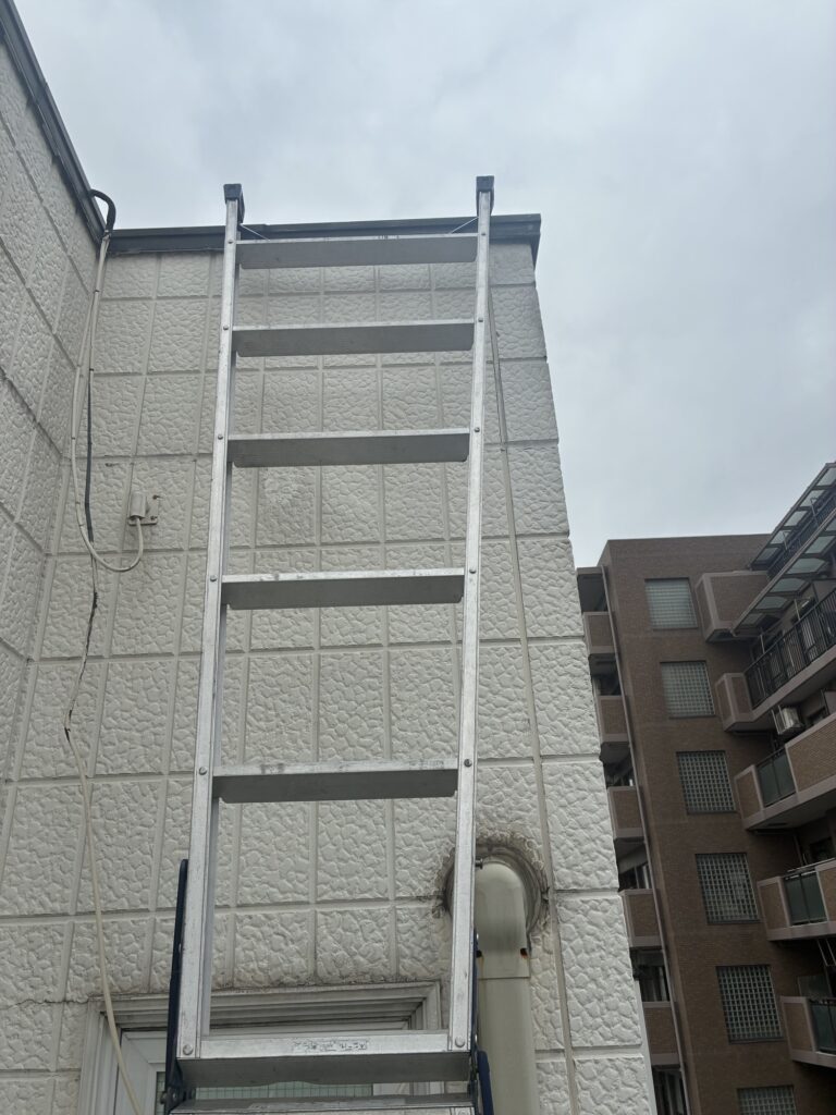 3階の陸屋根(屋上)に設置されているアンテナ線の撤去