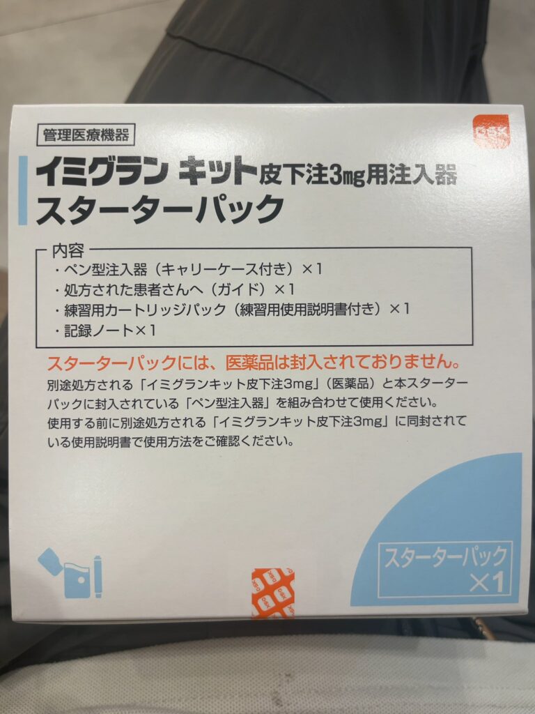 なので群発期と呼ばれる発作が始まると病院に行って発作を抑えるイミグラン皮下注という薬をもらいます。