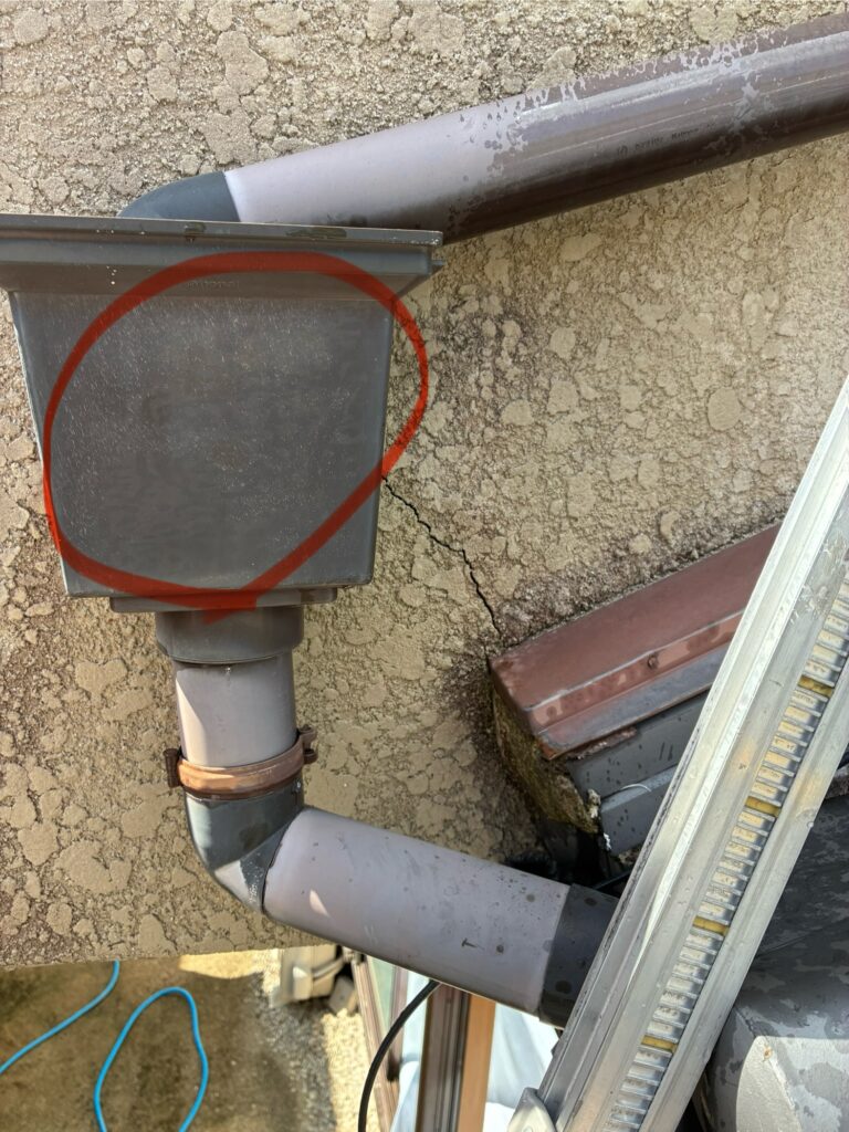 もちろんすぐに水は樋からあふれ出したわけですが、しばらく水を出していると下の部屋で水漏れ発生!!