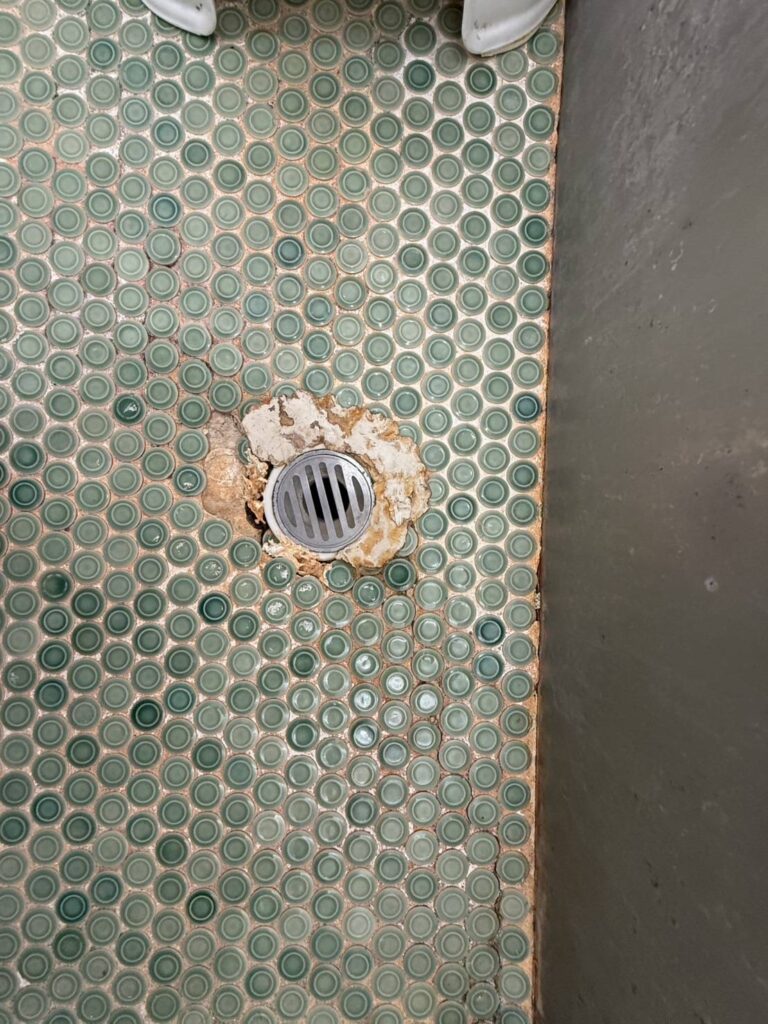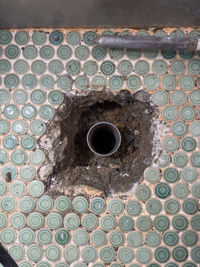 特に排水口回りが割れてしまい、水が床下へ回っていました。
