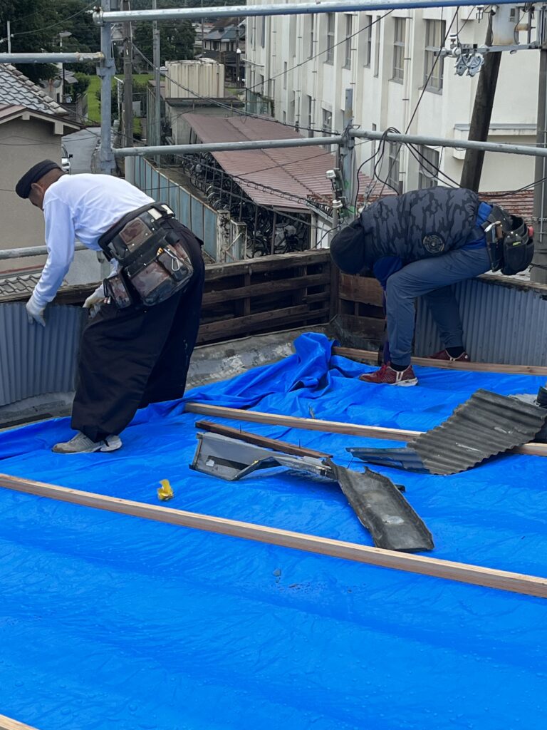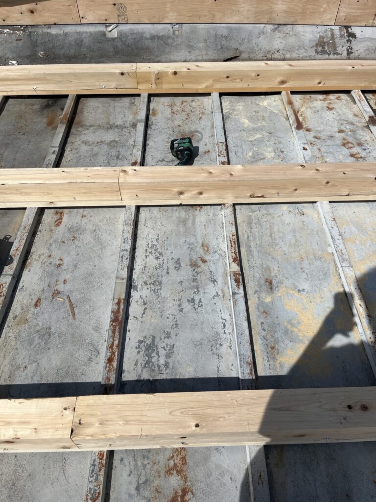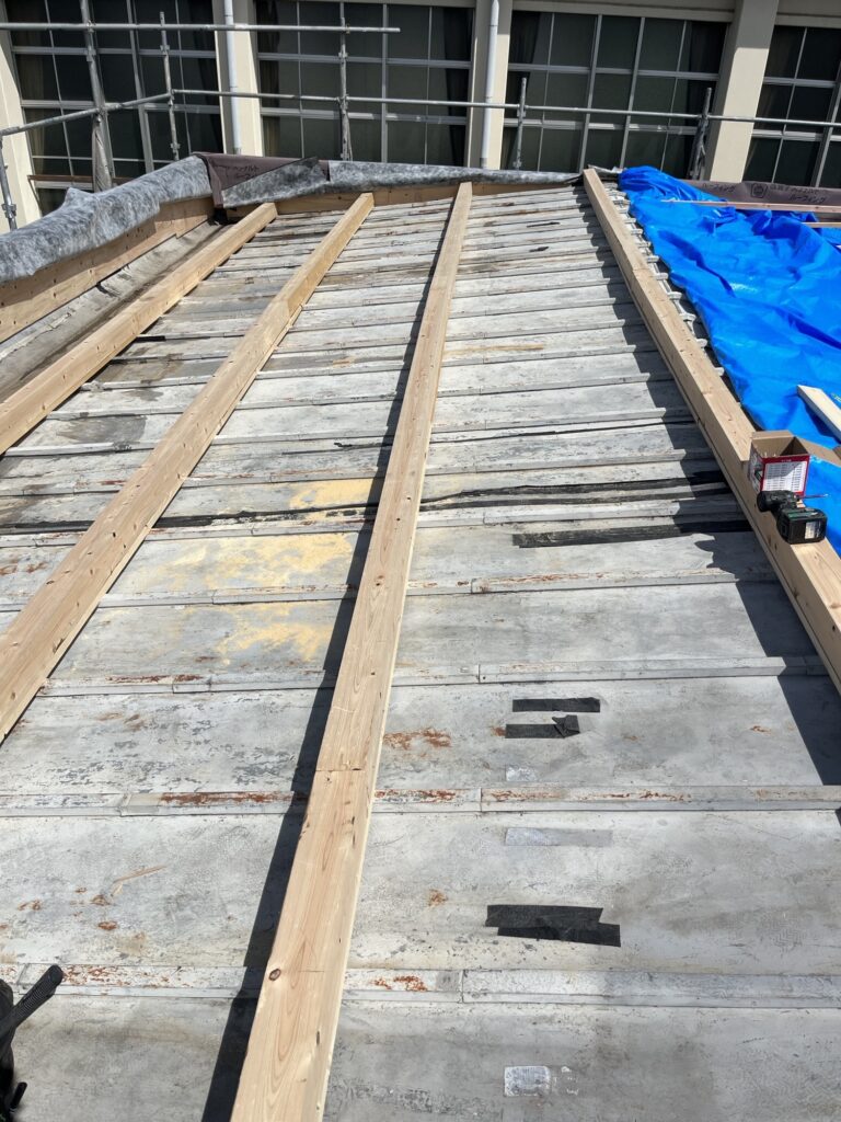その後既存の屋根の上に材木で高さを作っていきます。