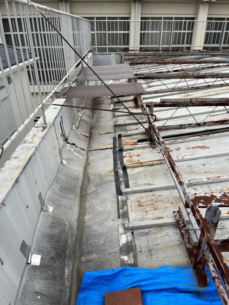 雨漏りの根本的な原因はこの「谷」に水が溜まり、雨の降り方が酷いと排水が追い付かず瓦棒という屋根から逆流してしまうことでした。